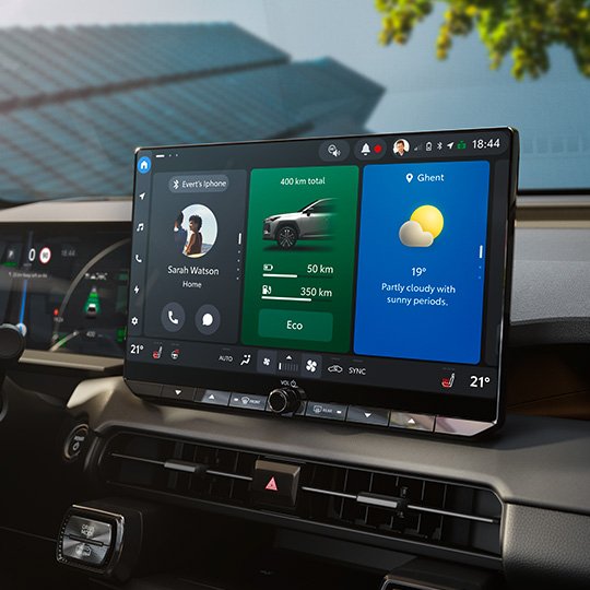 Selkeä 12,3-tuumainen digitaalinen mittaristo esittää keskeiset ajotiedot, akun varaustilan, ajoavustintoiminnot ja navigoinnin.
